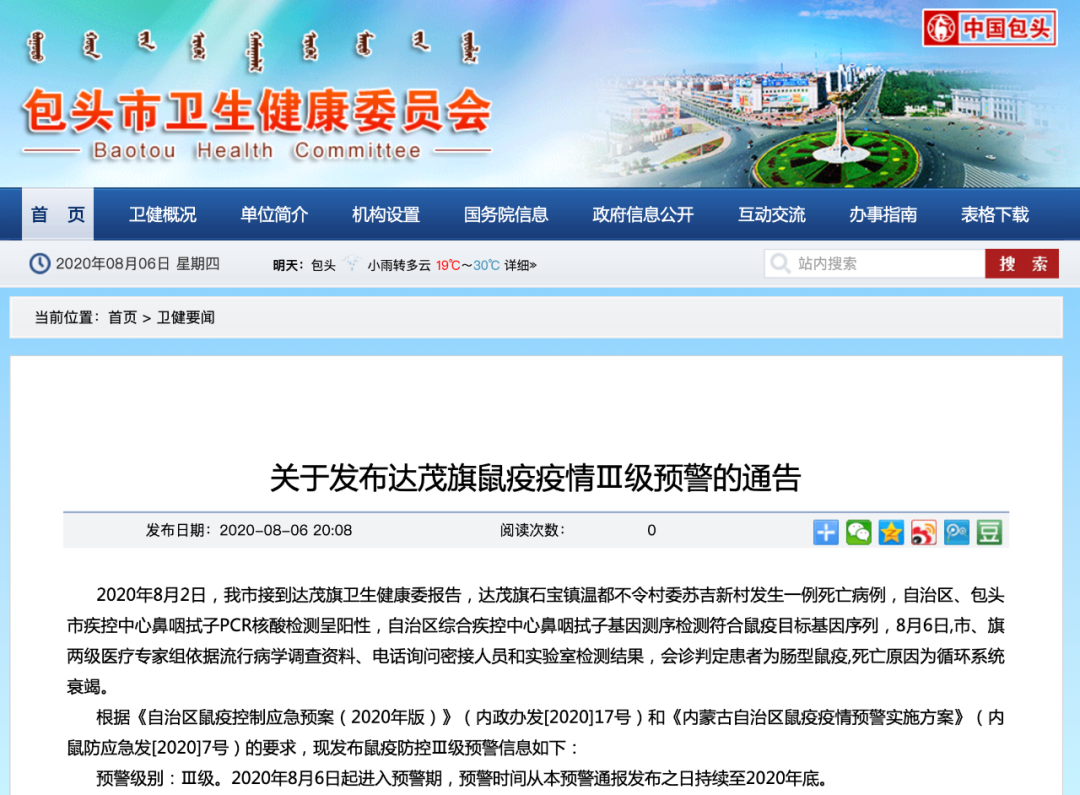 包頭市衛(wèi)生健康委員會發(fā)布鼠疫防控Ⅲ級預(yù)警信息